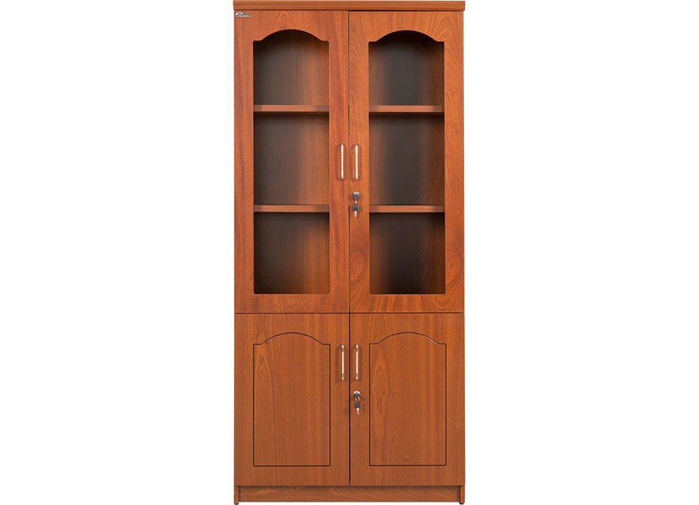 Tủ tài liệu 2 buồng có khoang trên sử dụng hai khung cánh kính, khoang dưới cánh gỗ.