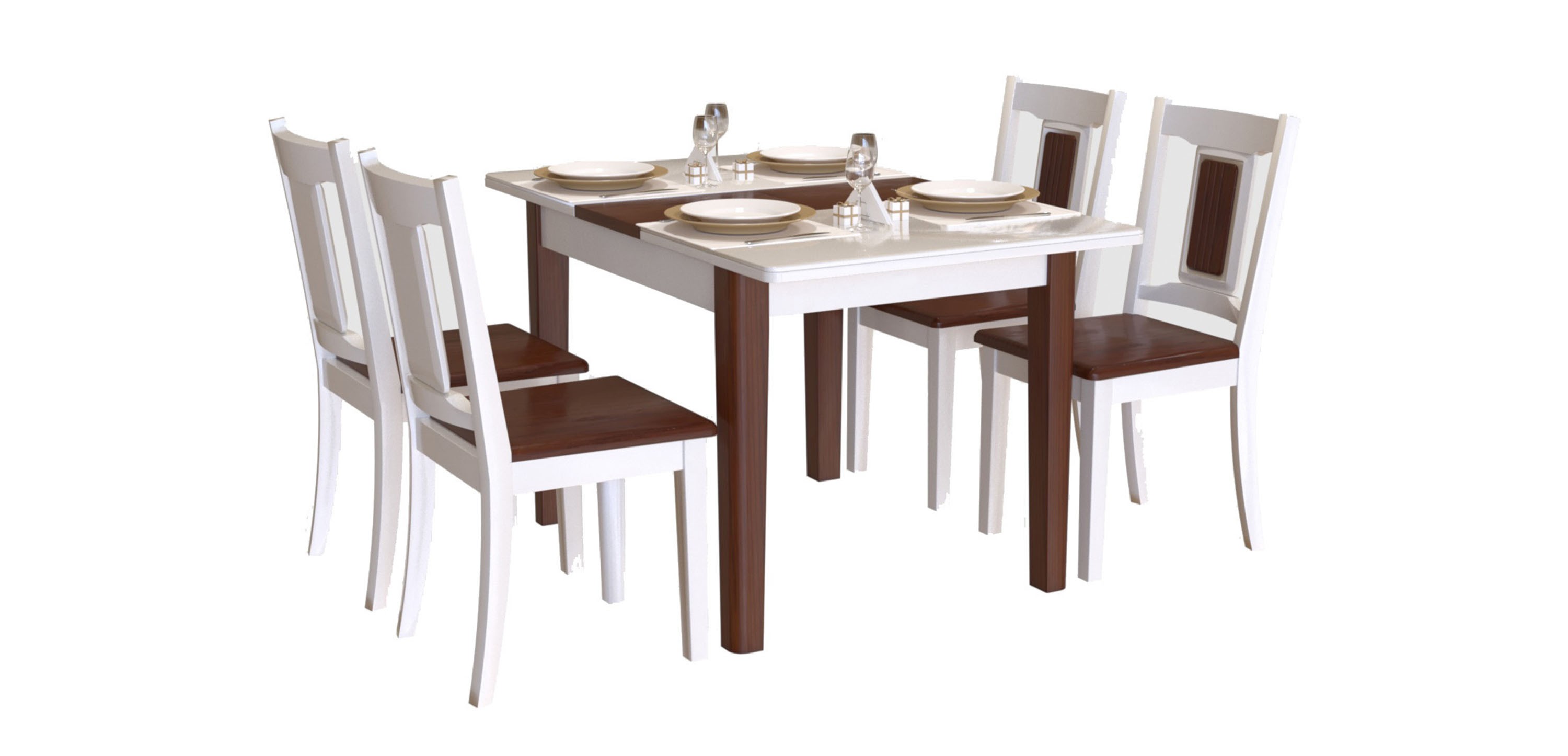 Bộ bàn ghế ăn kéo trượt thông minh sử dụng mặt kính cường lực sơn màu.