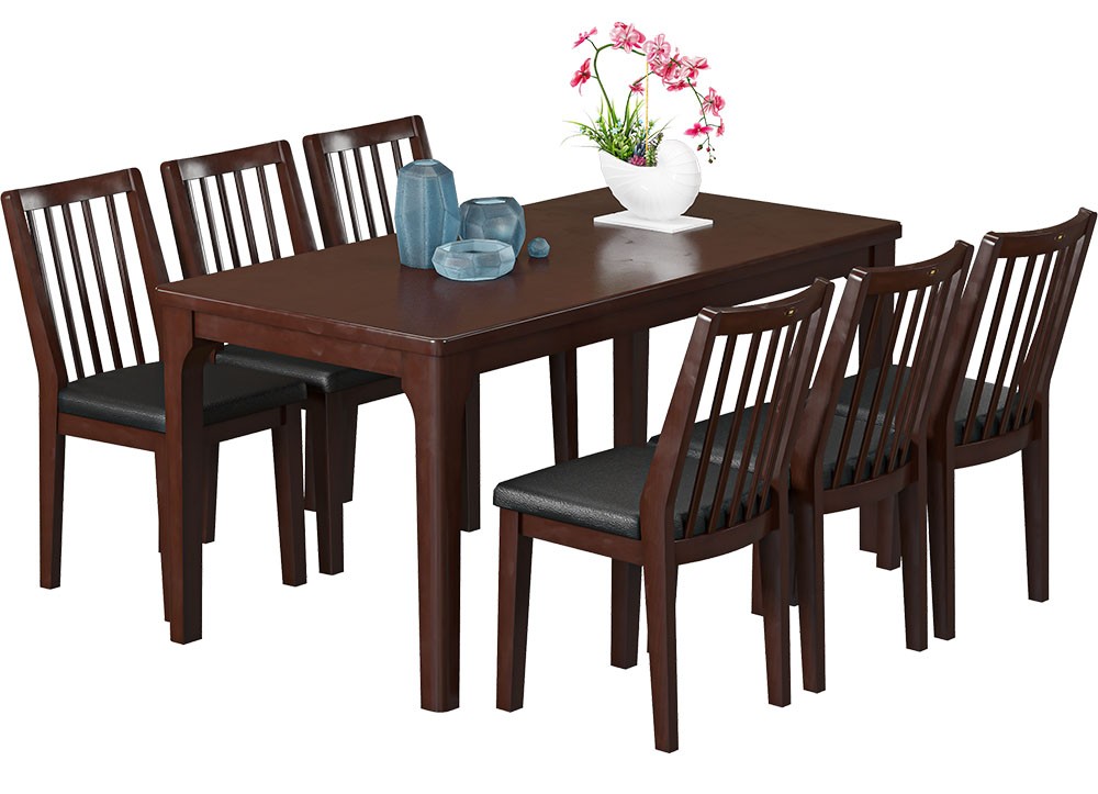 Bộ bàn ghế ăn cao cấp chất liệu gỗ tự nhiên tần bì, sơn màu hạt dẻ.
