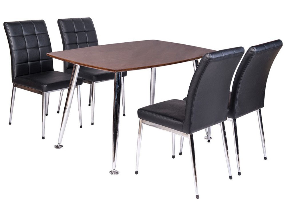 Bộ bàn ghế ăn cao cấp khung thép mạ gồm 1 bàn và 4 ghế, mặt bàn gỗ Verneer óc chó được phủ sơn PU cao cấp tạo cho sản phẩm sự sang trọng và đẳng cấp.