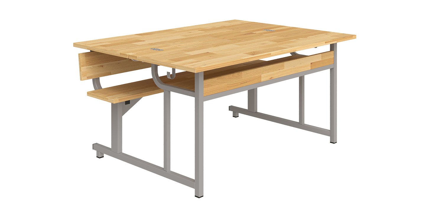Bộ bàn ghế bán trú liền ghế khung thép sơn tĩnh điện.