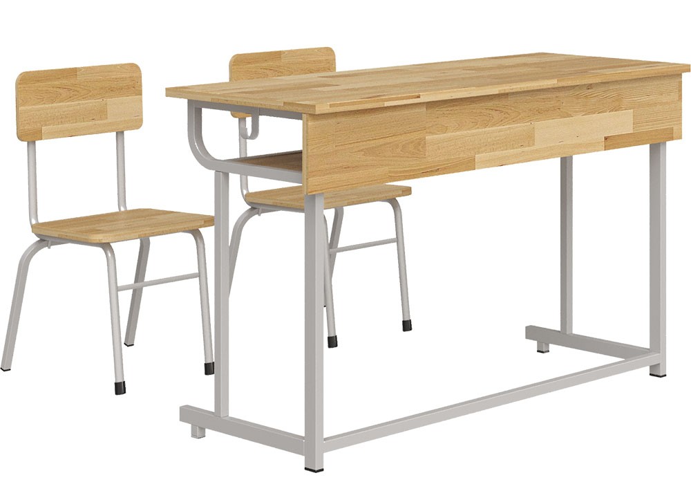 Bàn ghế học sinh khung thép sơn tĩnh điện, mặt gỗ tự nhiên được phủ một lớp sơn trong suốt để bảo vệ bề mặt và giữ được mầu sắc nguyên bản của gỗ