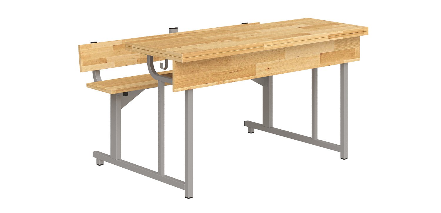 Bộ bàn ghế học sinh bán trú liền ghế, sử dụng khung thép sơn tĩnh điện.