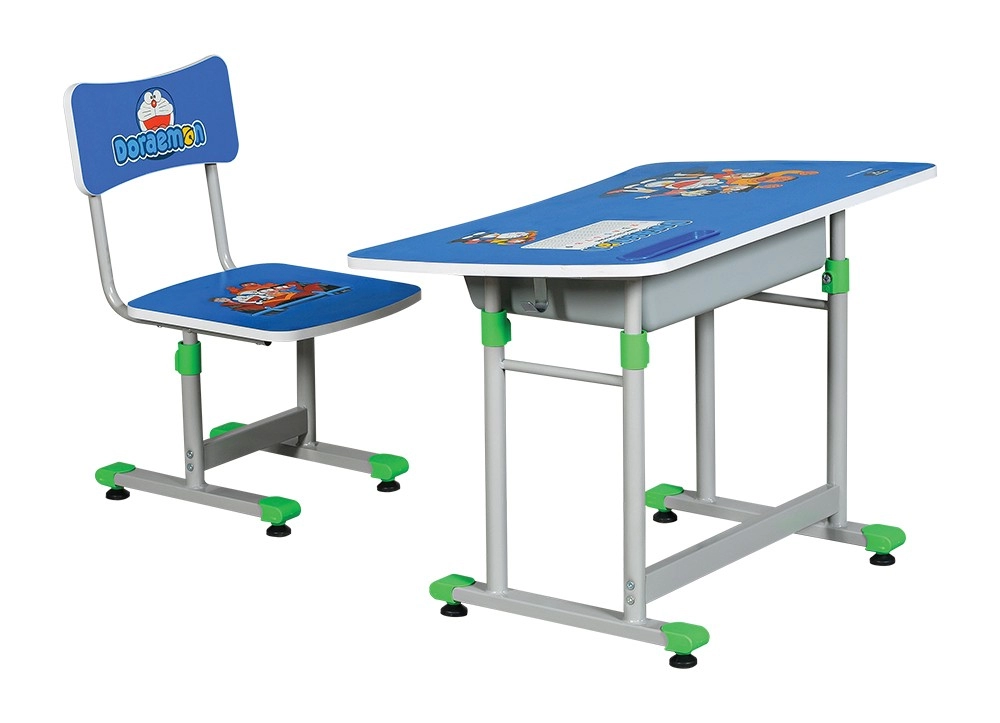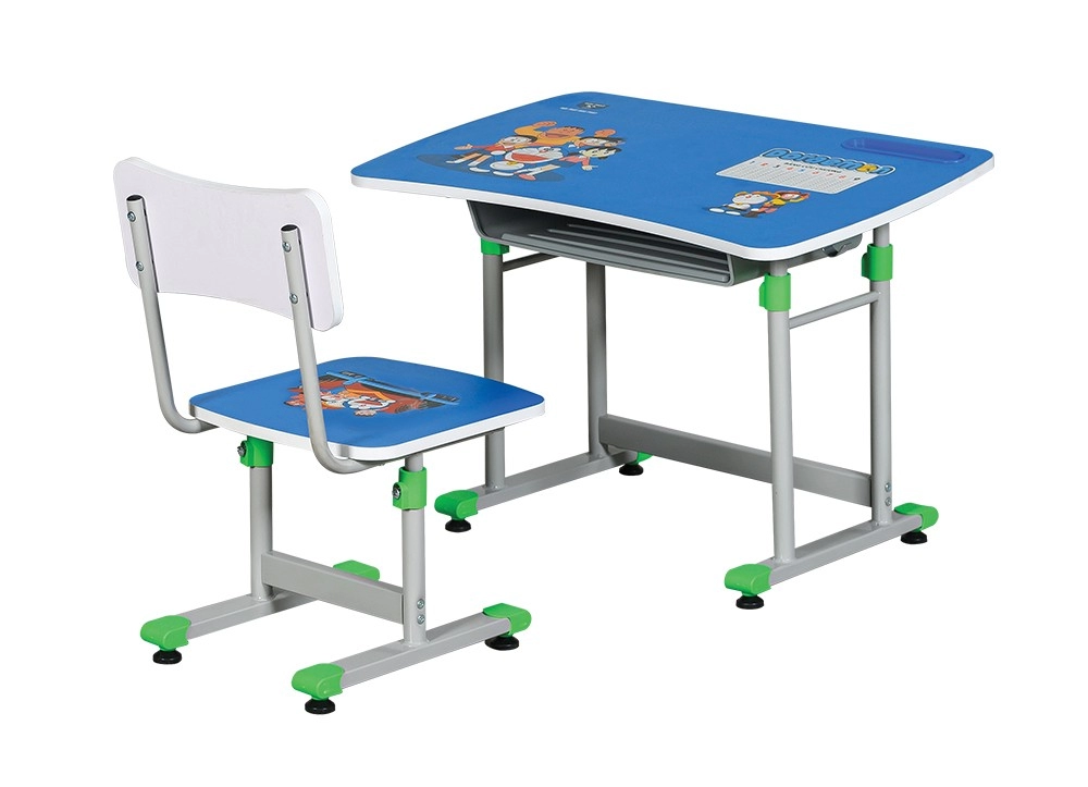 Bộ bàn ghế học sinh trong gia đình bằng khung thép sơn tĩnh điện.Mặt bàn và đệm tựa ghế sử dụng gỗ Melamine con giống