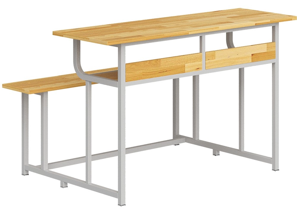 Bàn sinh viên khung thép sơn tĩnh điện, mặt gỗ tự nhiên được phủ một lớp sơn trong suốt để bảo vệ bề mặt và giữ được mầu sắc nguyên bản của gỗ