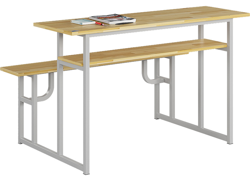 Bàn sinh viên khung thép sơn tĩnh điện, mặt gỗ tự nhiên được phủ một lớp sơn trong suốt để bảo vệ bề mặt và giữ được mầu sắc nguyên bản của gỗ