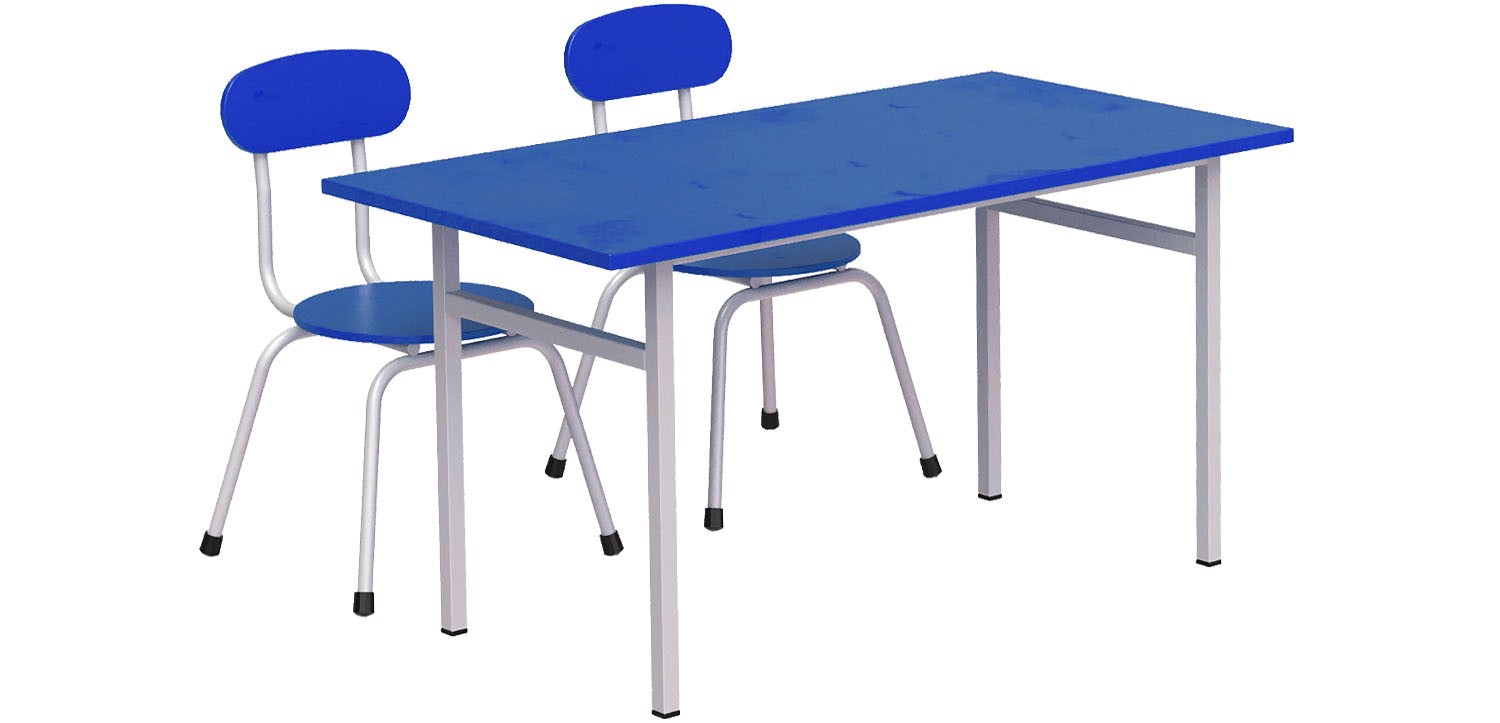 Bàn ghế chân tĩnh khung thép sơn tĩnh điện, phần gỗ sơn PU.