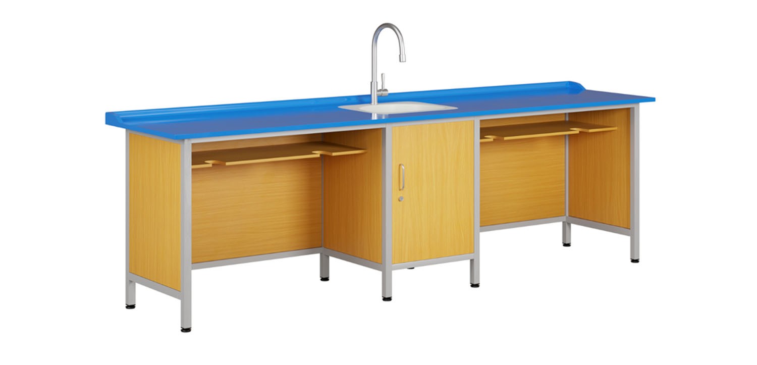 Bàn có trang bị chậu và vòi rửa để vệ sinh khi làm thí nghiệm