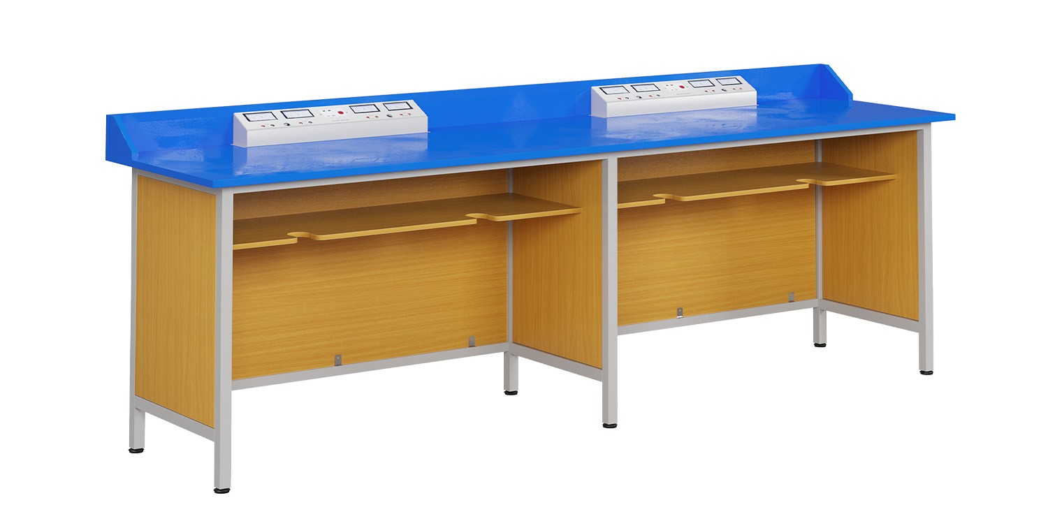 Bàn có 02 hộp điện tích hợp đồng hồ đo ampeke + Vol kế AC và DC kèm ổ cắm điện tiện dụng