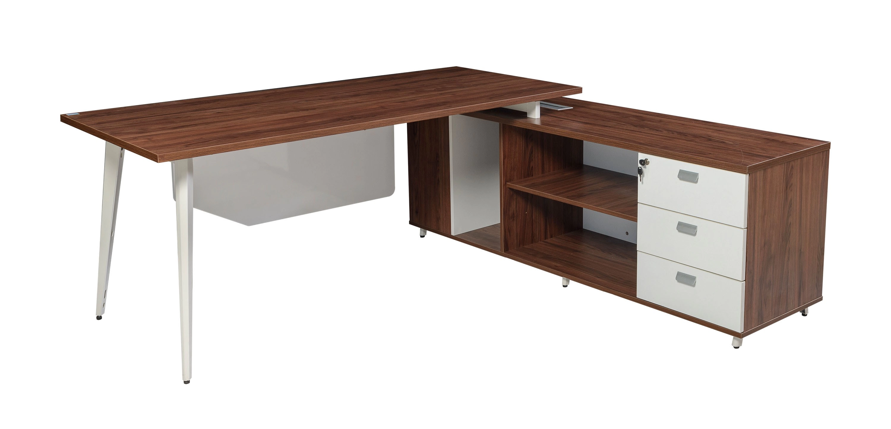 Bàn lãnh đạo cao cấp sử dụng khung thép dập định hình sơn tĩnh điện kết hợp mặt gỗ Melamine cao cấp, yếm bàn sơn PU. Bàn có tủ phụ đi kèm