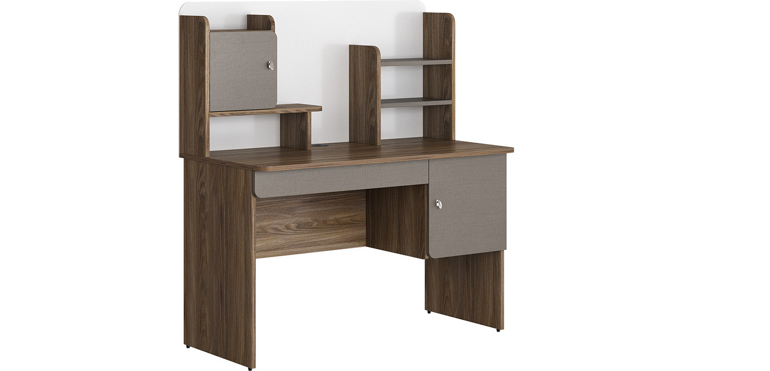 Bàn học sinh liền giá gỗ công nghiệp phủ melamin, có ngăn kéo cánh mở. Trên mặt có giá để đồ. (Màu nẹp dán cạnh có thể sẽ được thay đổi để tạo điểm nhấn và thẩm mỹ cho bàn).