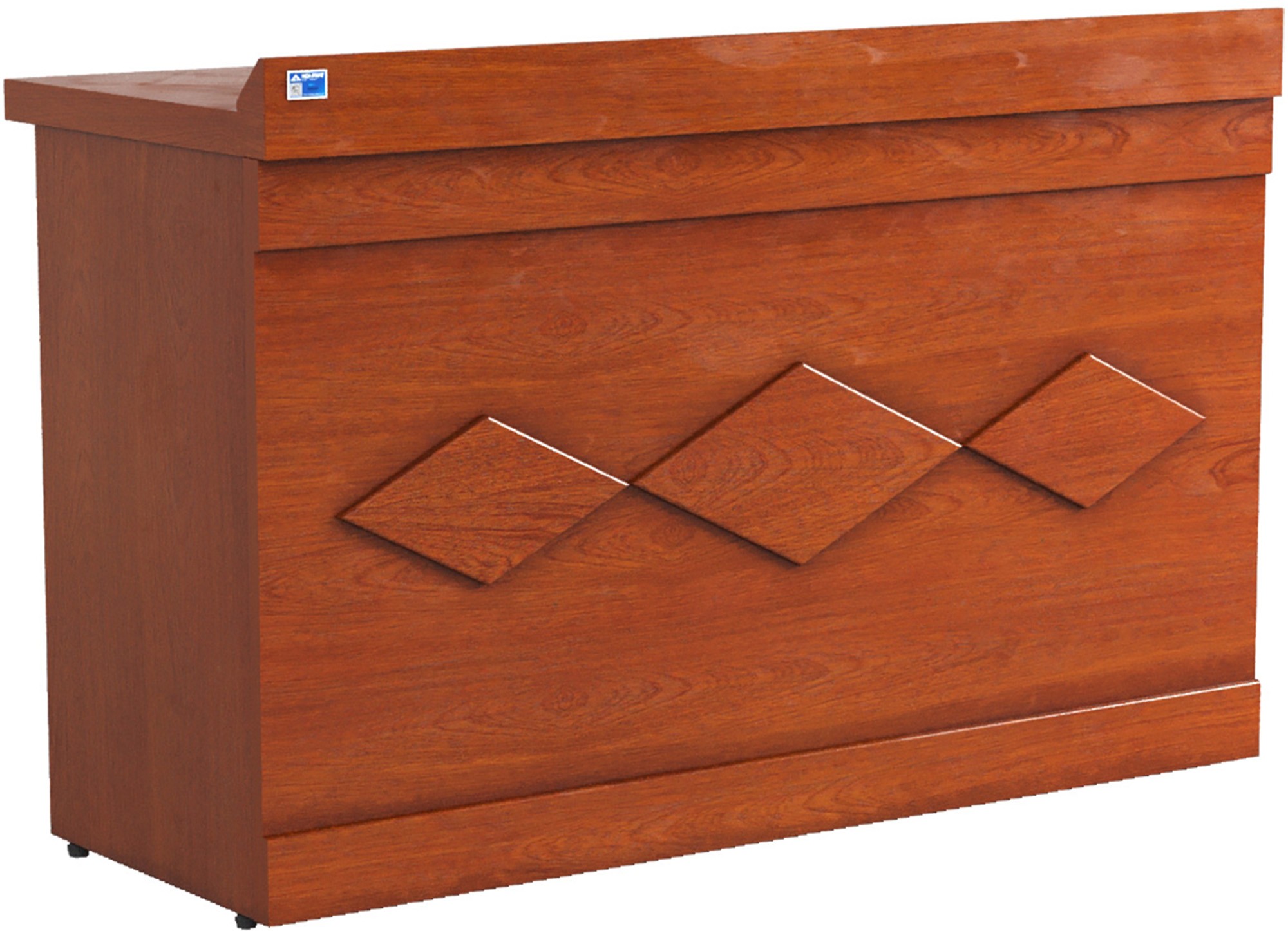 Bàn hội trường gỗ Veneer, yếm bàn được trang trí hình quả trám.