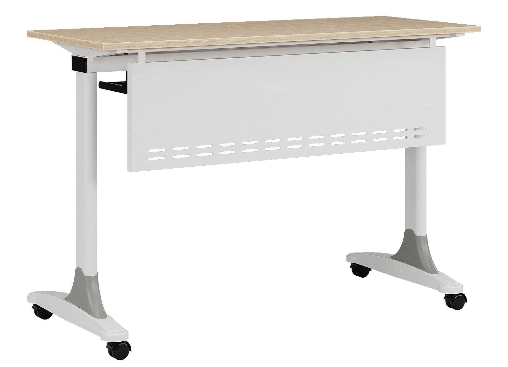 Bàn hội trường gấp mặt, phần gỗ màu M2, khung thép sơn trắng.