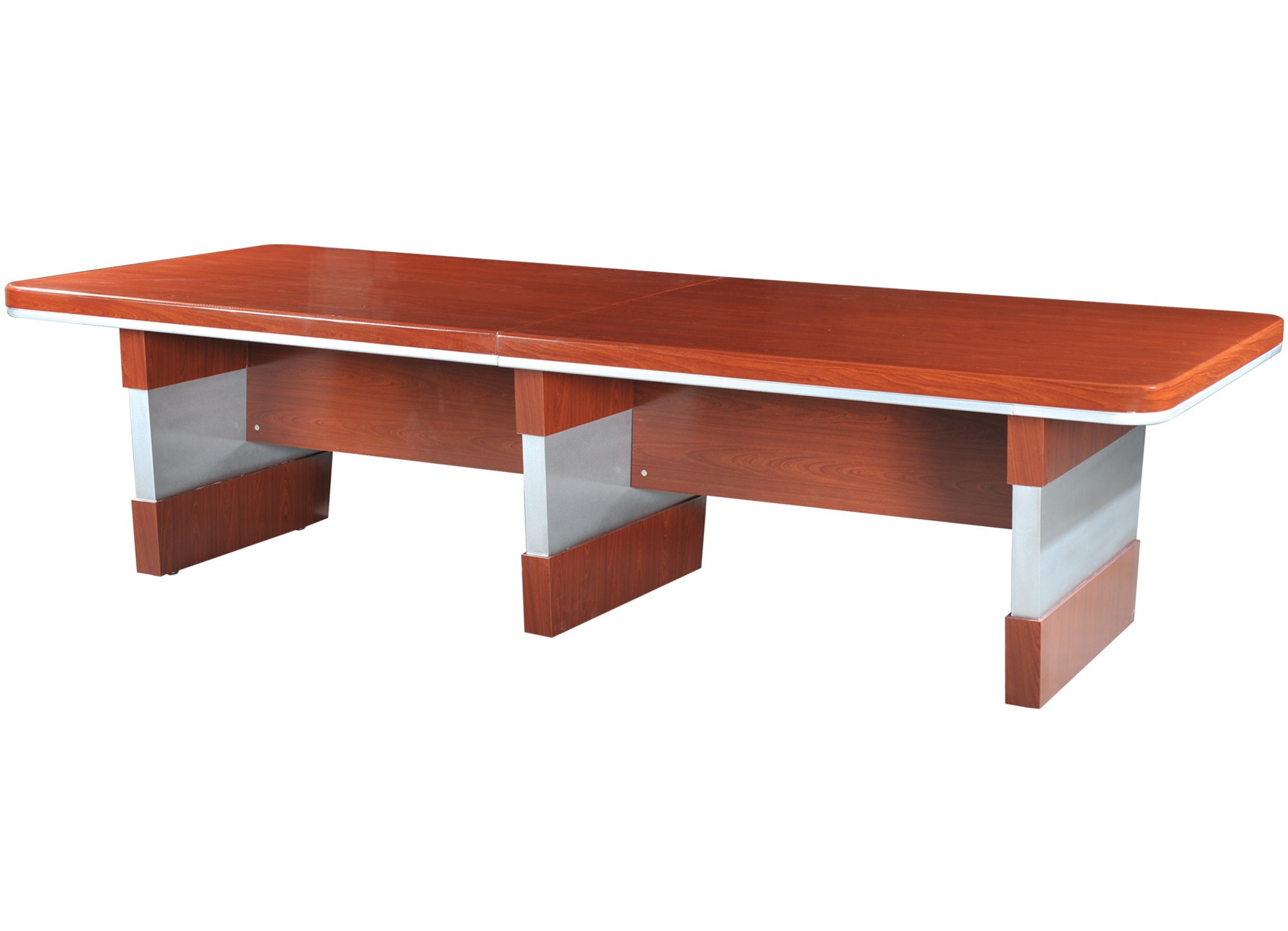 Bàn họp gỗ sơn PU mặt ghép 2 phần và có 3 chân. Mặt bàn hình chữ nhật được trang trí kết hợp 2 màu giấy, chân bàn được ghép hộp.