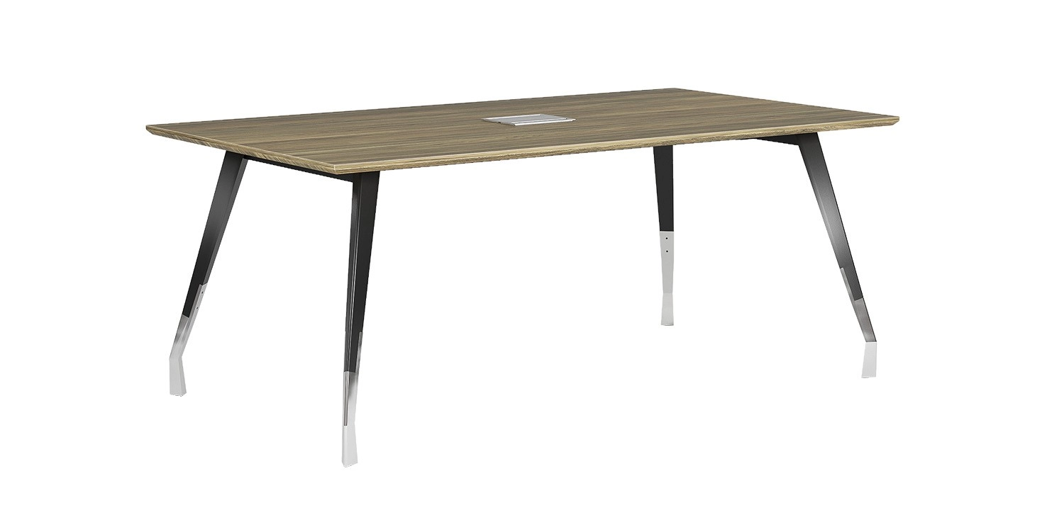 Bàn họp cao cấp mặt gỗ melamine vát cạnh 45 độ hai cạnh dài có 1 nắp ổ điện, kết hợp chân bàn thép dập định hình sơn đen nhám kết hợp mạ
