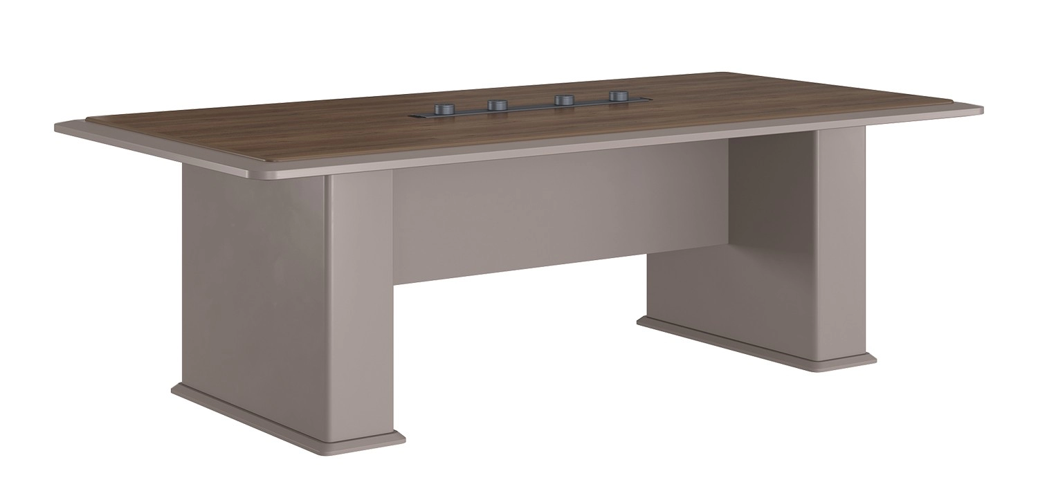 Bàn họp LUXURY SUPREME S4 chất liệu gỗ sơn+ melamine có. Mặt bàn có thanh ray điện gồm 4 ổ cắm có thể di chuyển dọc theo ray. Tạo sự khác biệt và tính tiện dụng cho sản phẩm.
