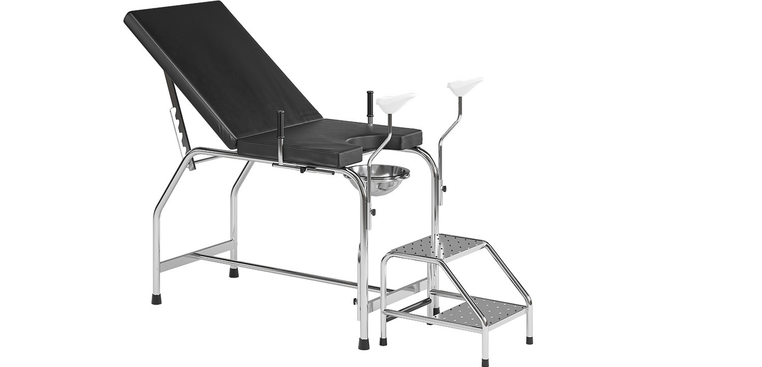 Bàn khám sản khung Inox 201, đệm Pvc cao cấp. Đệm lưng có thể điều chỉnh từ 20ºC-45ºC. Giá đỡ đùi được