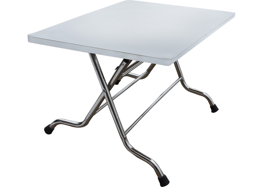 Bàn ăn chân gấp Inox toàn bộ, mặt bàn chữ nhật bo góc tròn. Xương mặt bàn sử dụng xương gấp