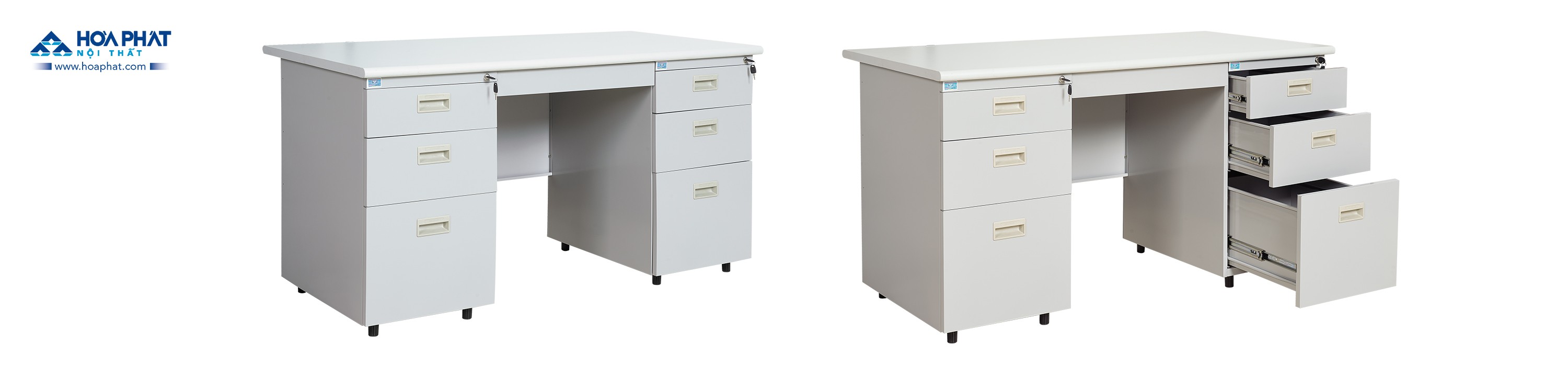 Bàn có 2 hộc liền gồm 3 ngăn kéo và một ngăn kéo dài lắp dưới mặt bàn.