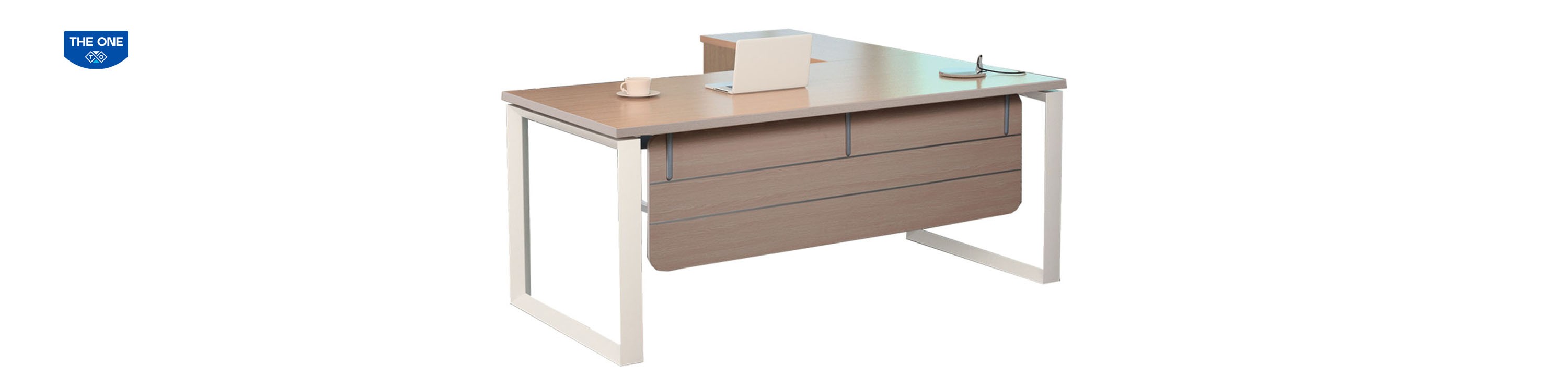 Bàn lãnh đạo khung thép tam giác, mặt bàn gỗ Melamine.