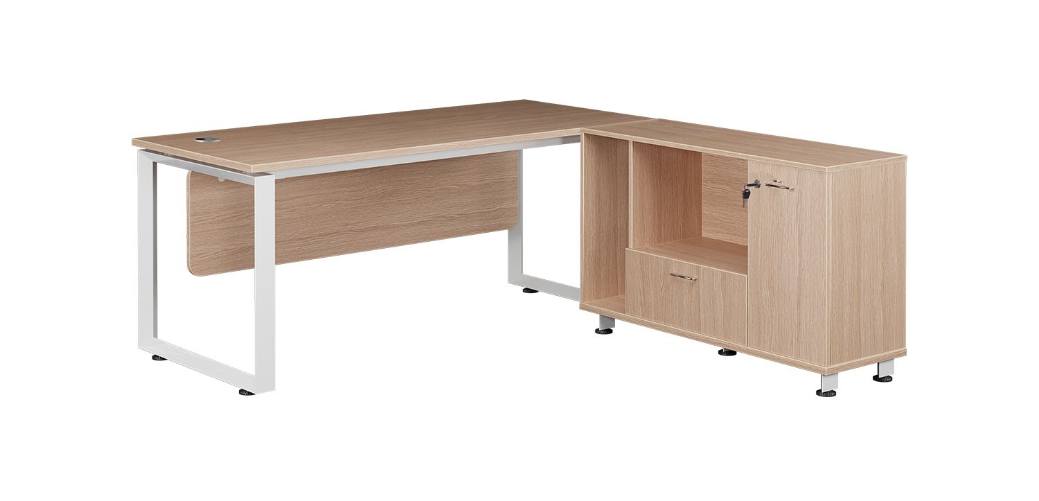 Bàn lãnh đạo khung thép tam giác, mặt bàn gỗ Melamine.
