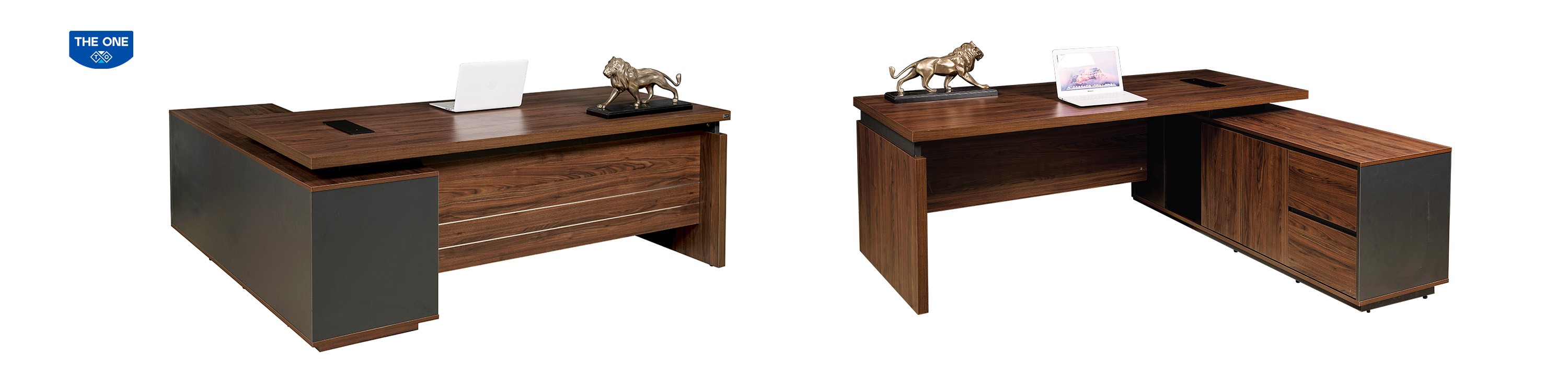 Bàn có tủ phụ đi kèm với hộp điện cao cấp tạo sự sang trọng, đẳng cấp cho sản phẩm