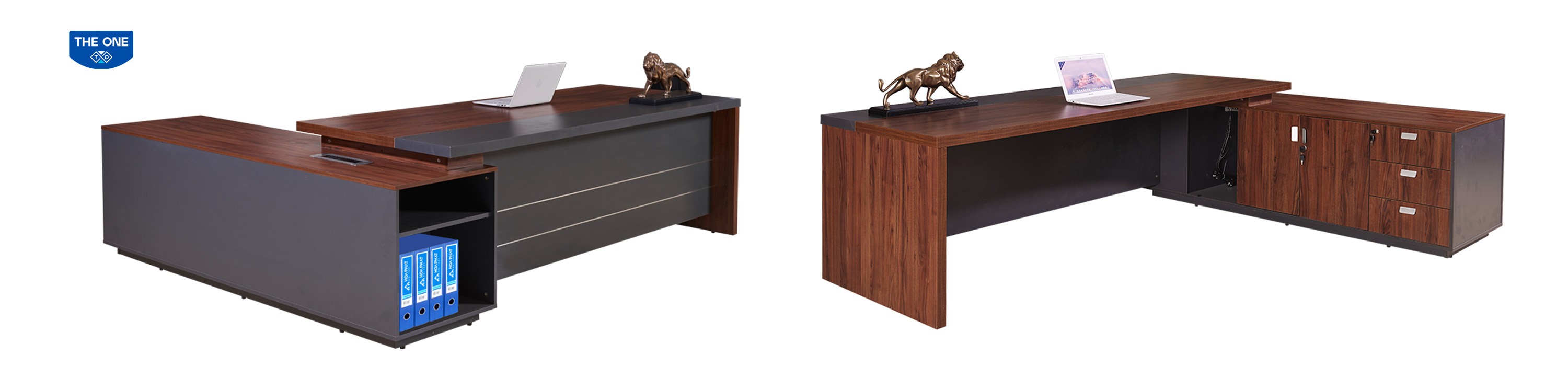 Bàn có tủ phụ đi kèm với hộp điện cao cấp tạo nên sự sang trọng và đẳng cấp cho sản phẩm.
