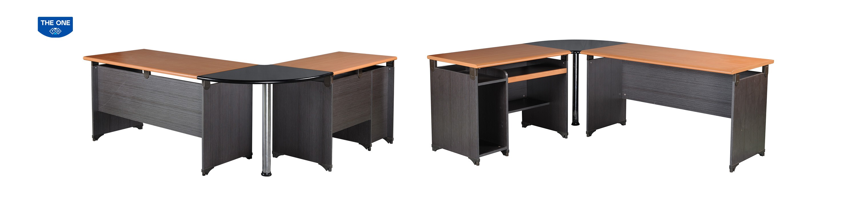 Bộ bàn lãnh đạo ghép mặt bàn Laminate gồm: Bàn làm việc, bàn phụ, hộc, góc nối NTG375 + ML720