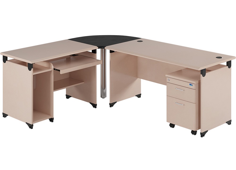 Bộ bàn lãnh đạo ghép mặt bàn Laminate gồm: Bàn làm việc, bàn phụ, hộc, góc nối NTG45