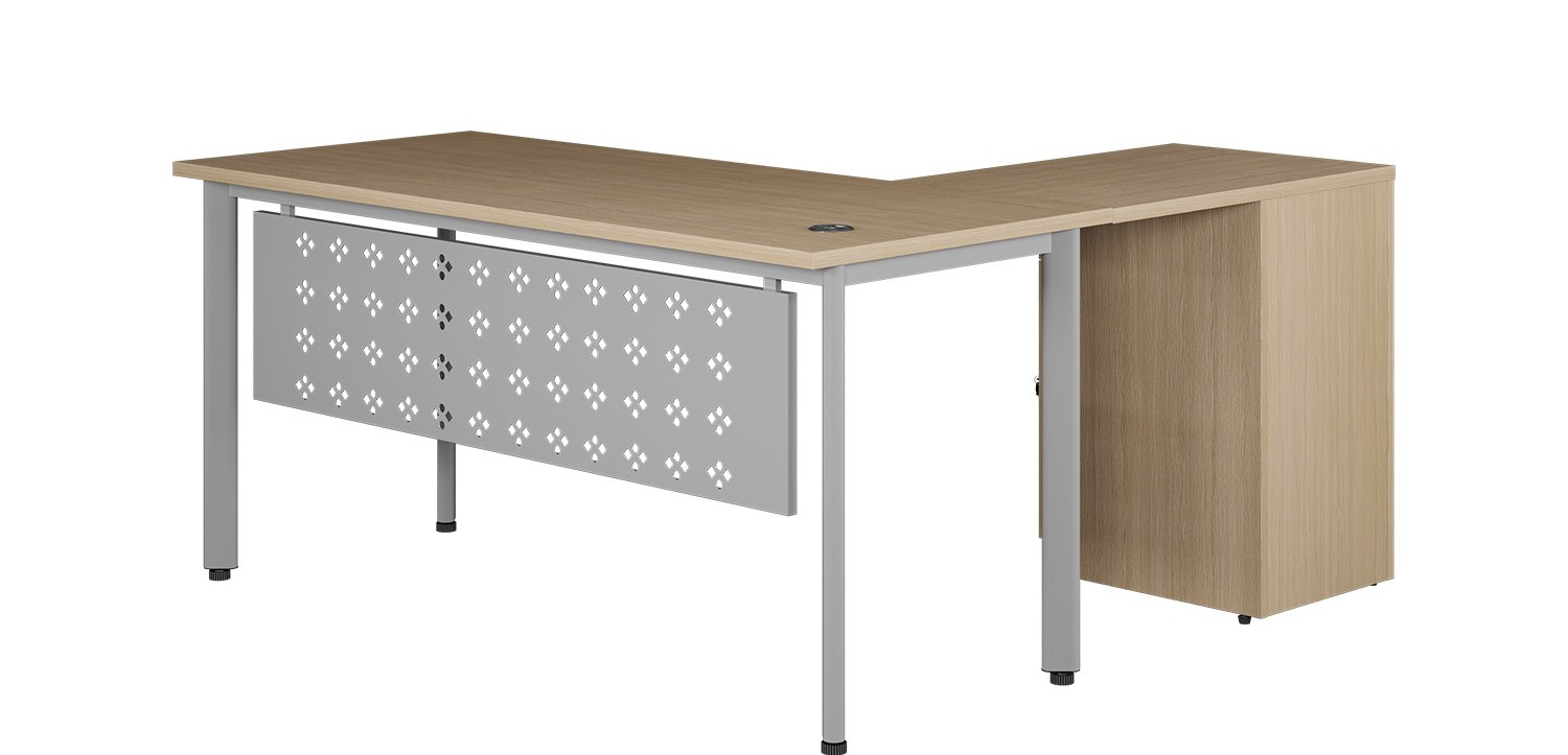 Bàn trưởng phòng khung thép ống oval có hộc liền kèm bàn phụ,