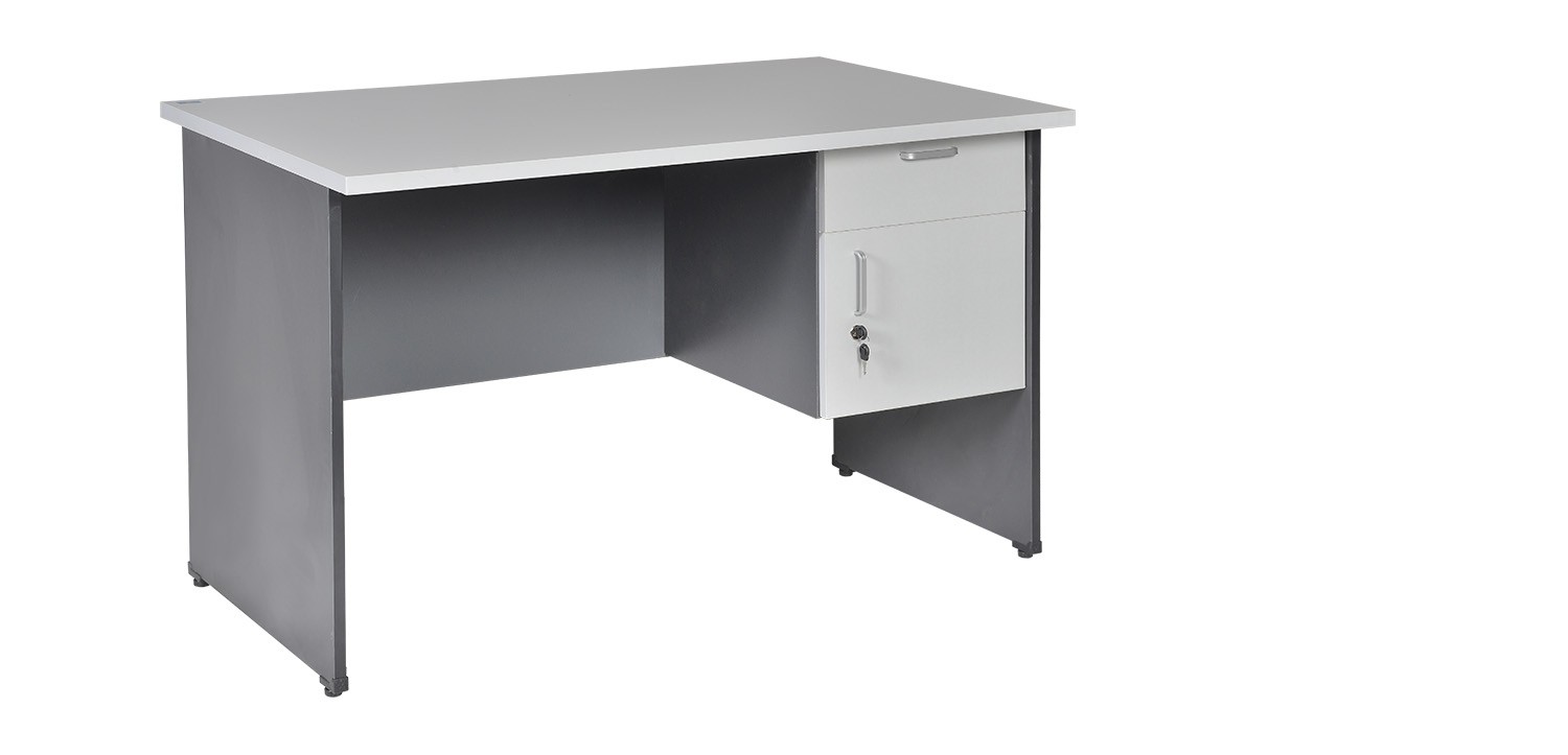 Bàn làm việc gỗ công nghiệp có hộc treo gồm 1 ngăn kéo và 1 cánh mở.