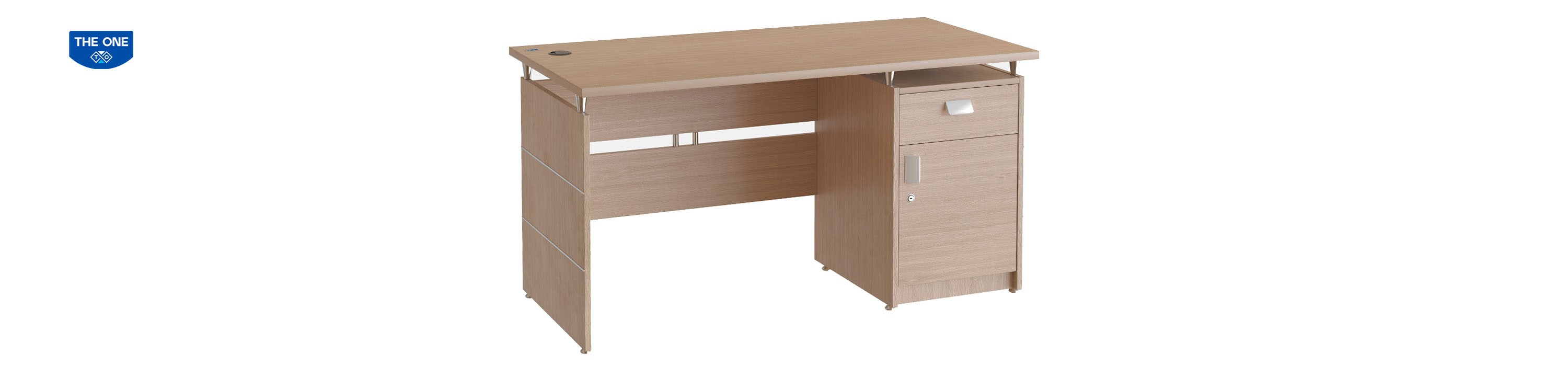 Bàn làm việc gỗ Melamine có hộc liền gồm 1 ngăn kéo và 1 cánh mở có khóa.