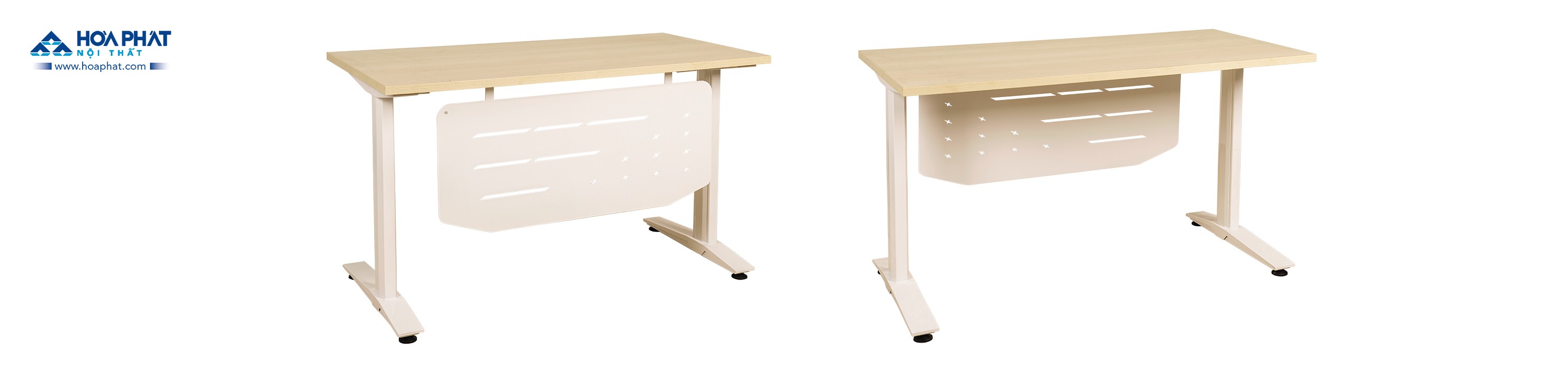 Bàn làm việc có yếm tôn trang trí, mặt bàn bằng melamine, có vát cạnh 45 độ phía người ngồi