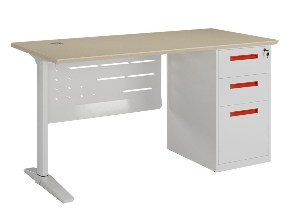 Bàn làm việc Unique có hộc liền và tay nắm âm màu cam.