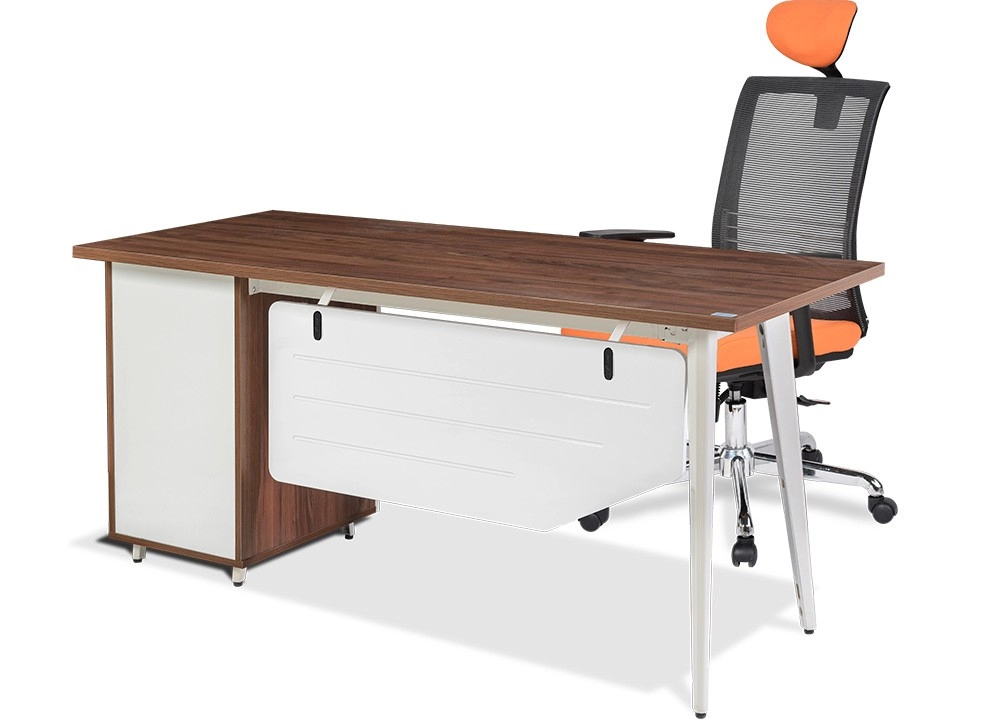 Bàn làm việc hộc liền sử dụng khung thép dập định hình sơn tĩnh điện. Mặt bàn gỗ melamine cao cấp, yếm bàn sơn PU.