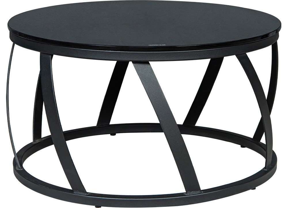 Bàn Sofa cao cấp chất liệu thép sơn đen nhám, mặt bàn kính cường lực tròn 60x60cm hoặc 80x80cm dày 10mm.