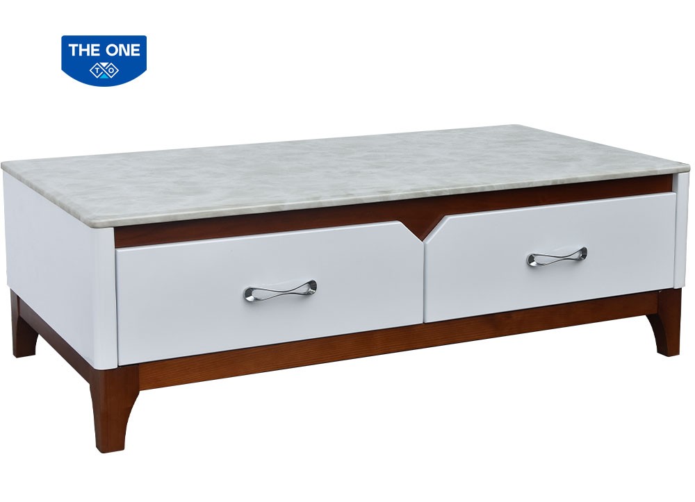 Bàn sofa cao cấp khung gỗ tự nhiên kết hợp gỗ công nghiệp. Bàn có 04 ngăn kéo được chia đều 2 bên, sử dụng tay nắm mạ.