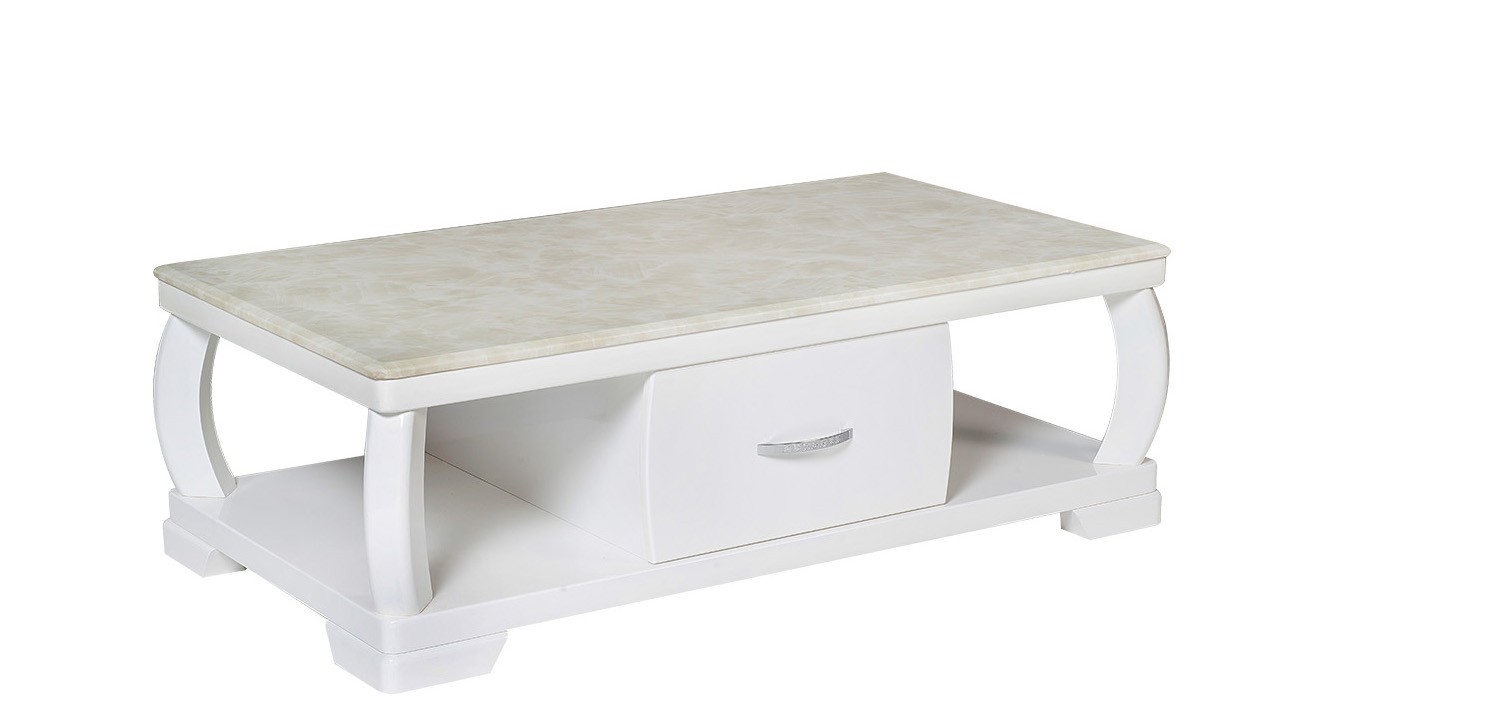 Bộ bàn Sofa cao cấp chân gỗ tự nhiên kết hợp mặt đá nhân tạo và có 1 ngăn kéo ở giữa.