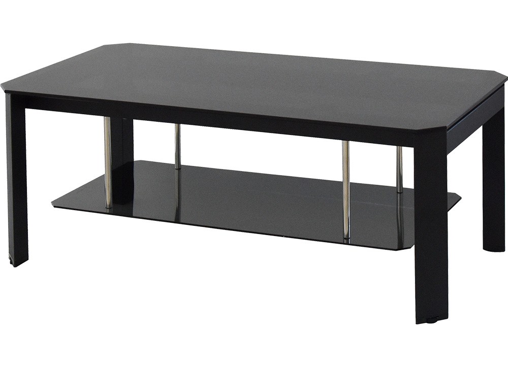Bàn sofa khung thép sơn tĩnh điện, mặt kính cường lực và có đợt kính treo để đồ dưới mặt bàn.