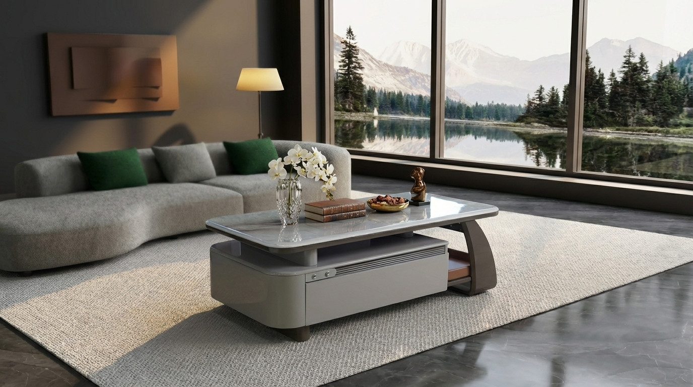 Bàn sofa cao cấp. Mặt đá, gầm gỗ công nghiệp cao cấp, có các vị trí để đồ thuận tiện