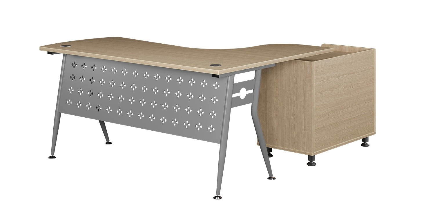 Bàn lãnh đạo khung thép mặt gỗ Melamine. Bàn có tủ phụ đi kèm,