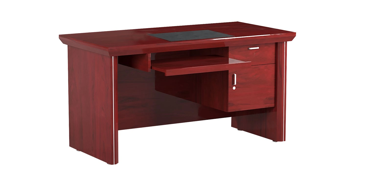 Bàn lãnh đạo cấp trung mặt hình chữ nhật có bàn phím. Bàn có hộc treo 1 ngăn kéo, 1 cánh mở và bàn phím.