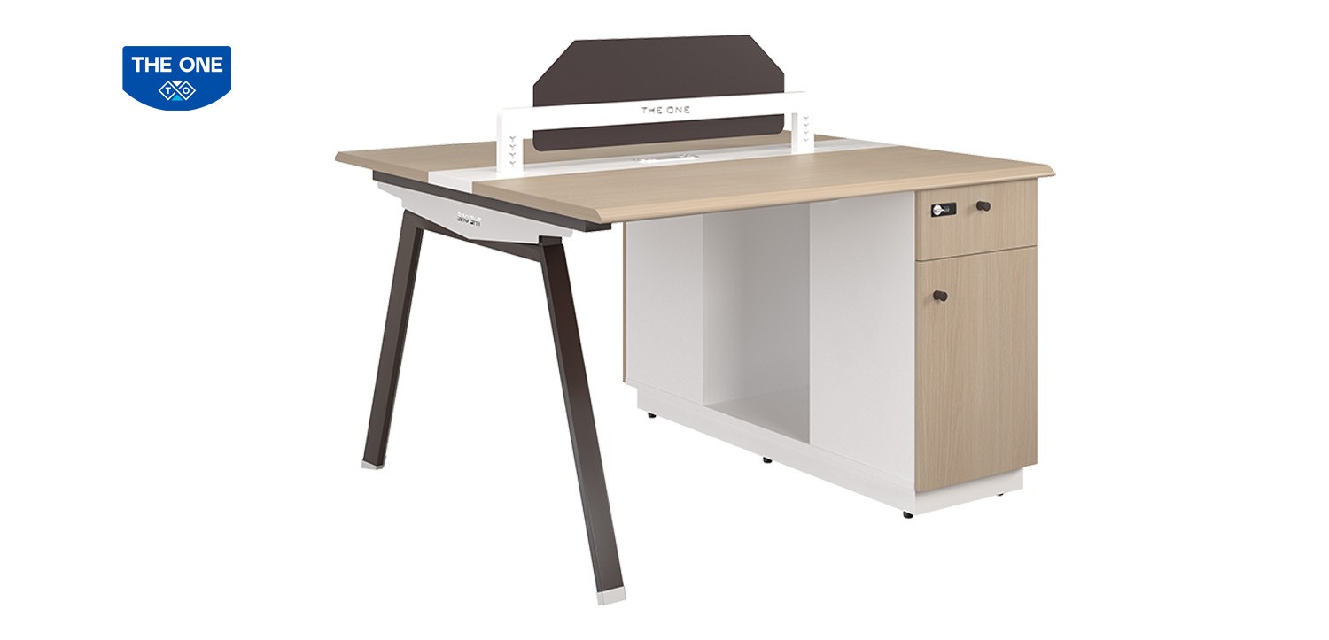 Bàn modul 2 chỗ MD01-2C17 chân ống thép biên dạng mới. Bàn sử dụng gỗ phủ Laminate kết hợp melamine. Mặt bàn có vách gỗ kết hợp ống thép khắc lazer. Ngăn kéo hộc có sử dụng khóa số.