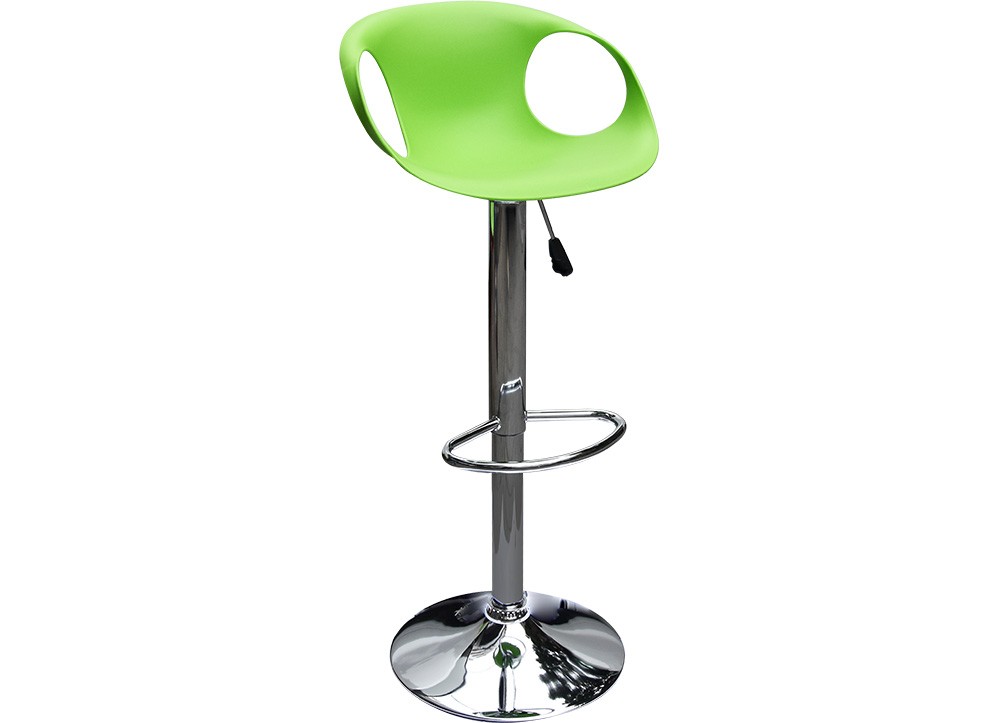 Ghế quầy bar lưng thấp có đệm bằng nhựa, chân đế thép dập mạ Ni-Cr bóng sáng.