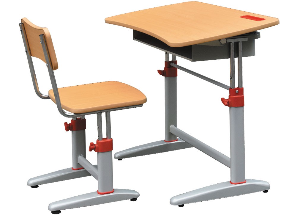 Bộ bàn ghế học sinh khung thép, mặt bàn, đệm tựa ghế gỗ Melamine.