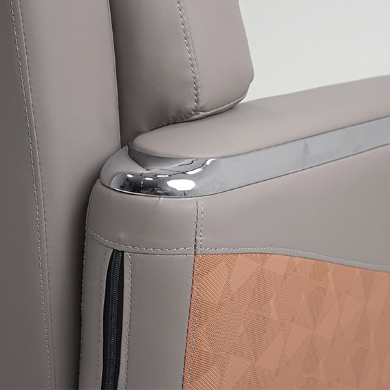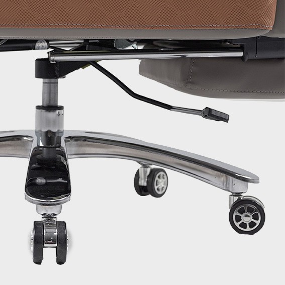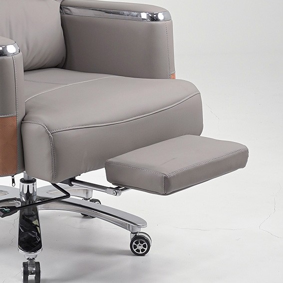 Ghế lãnh đạo cao cấp có khung cốt gỗ chắc chắn, đệm tựa được bọc bằng chất liệu giả da cao cấp, tạo cảm giác mềm mại và êm ái. Ghế có thể điều chỉnh được độ cao và độ ngả, cùng với cơ cấu để chân tiện lợi khi sử dụng. Tay ghế được ốp mạ thẩm mỹ cao, tạo điểm nhấn sang trọng. Chân ghế được làm từ thép mạ, đảm bảo độ bền và tính thẩm mỹ.