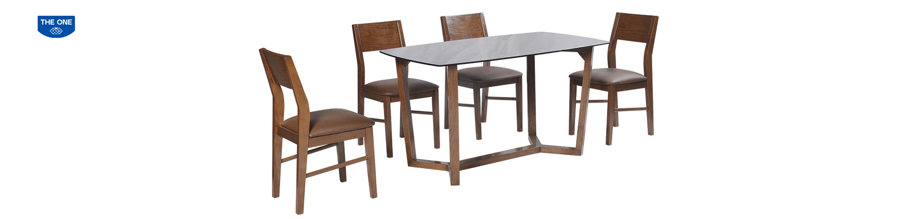 Bộ bàn ghế ăn cao cấp khung gỗ tự nhiên trong đó mặt bàn sử dụng kính cường lực cao cấp, đệm ghế sử dụng liệu PVC chất lượng cao.