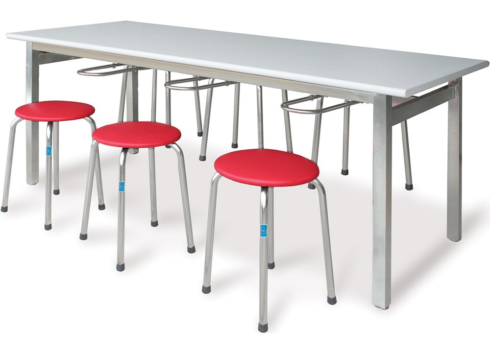 Bàn sử dụng các loại chất liệu gồm: Khung thép sơn - mặt laminate, Khung inox - mặt laminate, Khung inox - mặt bàn gỗ Okal phủ Pvc.