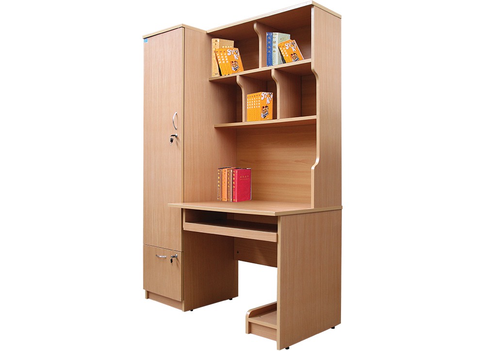 Bàn kết hợp 1 khoang tủ cánh gỗ dài để đồ dùng cá nhân.