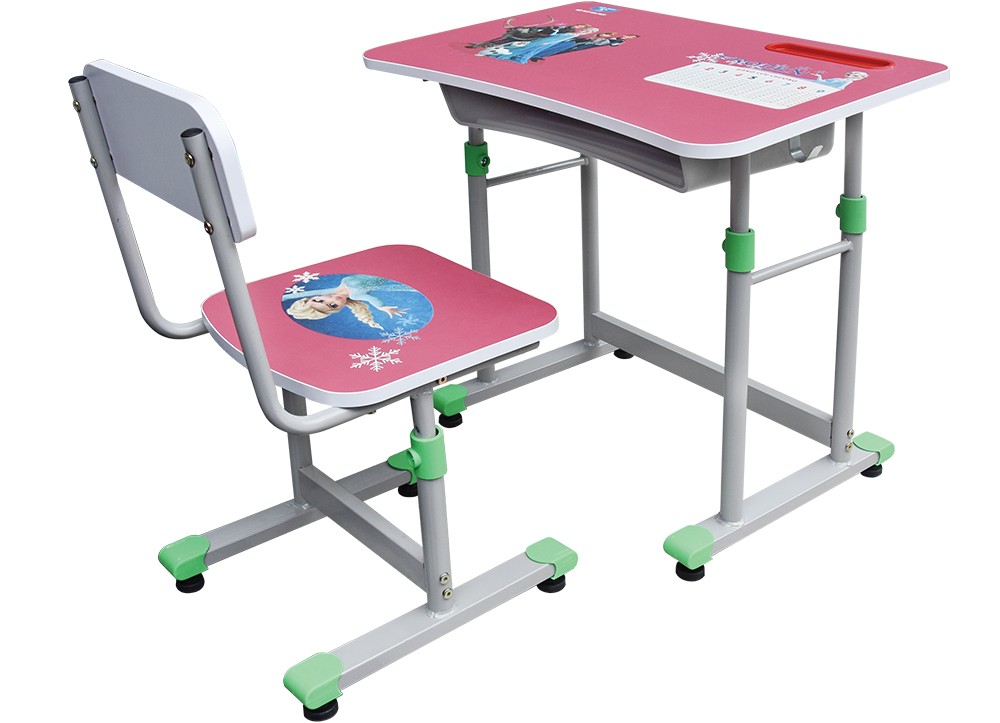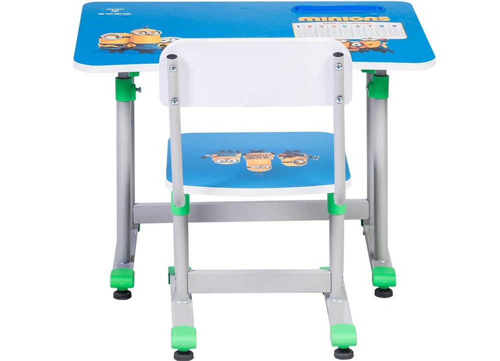 Bộ bàn ghế học sinh khung thép, mặt bàn và đệm tựa ghế gỗ melamine con giống.